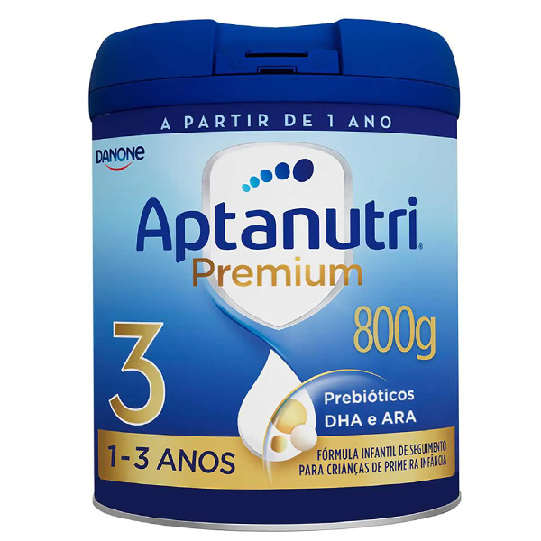 Fórmula Infantil Aptanutri Premium 3 Danone 1 a 3 anos 800gA Fórmula Infantil Aptanutri Premium 3 foi criada para a alimentação de lactentes e crianças de primeira infância. Sua composição contém prebióticos (GOS/FOS), DHA e ARA, indispensáveis para o desenvolvimento das crianças.R$ 70,99