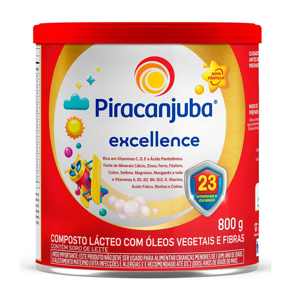 Composto Lácteo Infantil Excellence Piracanjuba a partir de 1 ano 800gO Piracanjuba Excellence é um composto lácteo em pó especialmente desenvolvido para crianças em fase pré-escolar, com uma fórmula nutricional completa. É um produto lácteo que contém leite como ingrediente predominante, enriquecido com 23 vitaminas e minerais essenciais.R$ 45,99